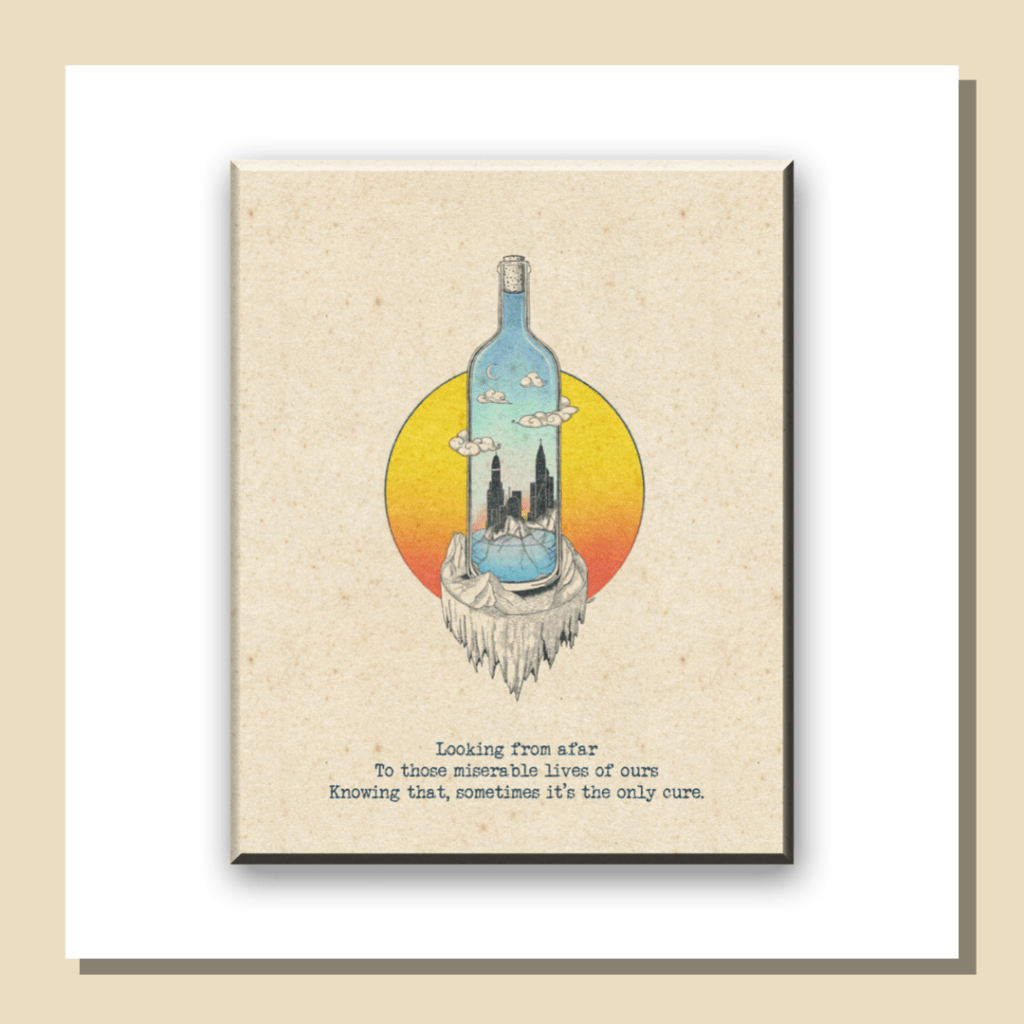 I imagined my “Life in a bottle”. Then realized it wasn’t an imagination yet a distorted reality. Sometimes it might feel right to step back and gaze our lives from afar. Somewhat isolated. Somewhat unbiased. Somewhat free of emotions. And reconsider…