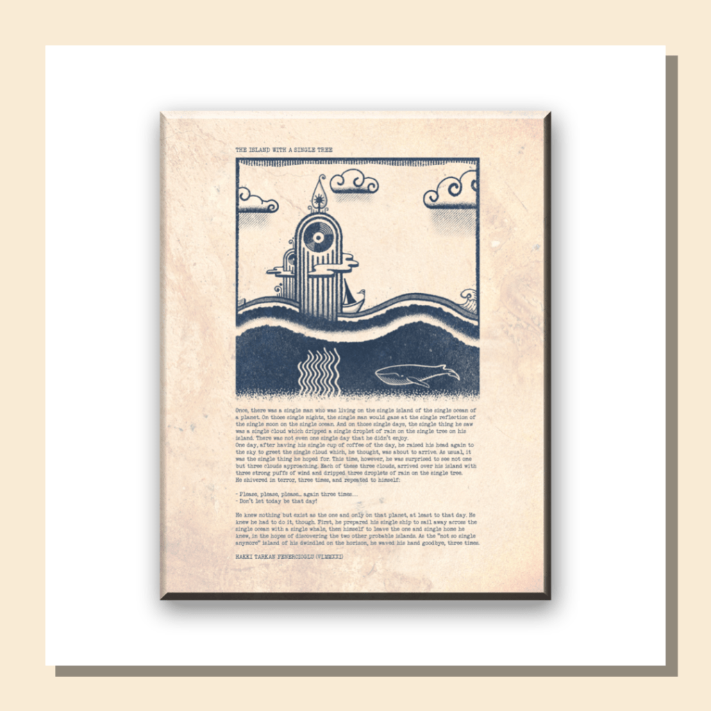 Once, there was a single man who was living on the single island of the single ocean of a planet. On those single nights, the single man would gaze at the single reflection of the single moon on the single ocean. And on those single days, the single thing he saw was a single cloud which dripped a single droplet of rain on the single tree on his island.